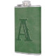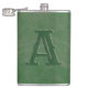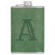 Rustic Green Leather Texture Monogram Initial Hip Flask