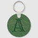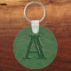 Rustic Green Leather Texture Monogram Initial Key Ring