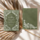 Celebrate your love with this rustic green Mexican wedding invitation featuring traditional papel picado and Talavera designs. Perfect for a boho-inspired or Mexican-themed wedding. Matching items in our store Cava Party Designs.