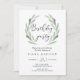 Rustic Green Olive Branch Wreath Birthday Party Invitation