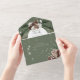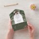 AVAILABLE WITH OR WITHOUT A QR CODE TO SCAN. This design features a rustic green pine and pinecone bouquet on a pine green background with white flowers. It is accented with a white sparkle overlay to illustrate the magic of the beautiful winter holidays. Perfect for a Christmas or winter wedding. Personalised All-In-One invitations are a unique combination of both a beautifully printed custom invitation with an easy to tear off perforated RSVP postcard. And they are so easy to use! You simply fold, then seal the back flap with the three included clear stickers, and mail. And when your guests receive your custom invite, they just tear the perforated RSVP Card off and drop it back in the mail to you!