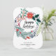 Rustic Green Red Poinsettia Floral Wreath Simple Holiday Card