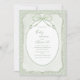 Sage green rustic polkadots with soft green overlay frame and topped off with a hand drawn green watercolor ribbon and bow. We’ve used lovely fonts and scripts done in coordinating colors baby shower invite.