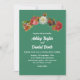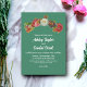 This elegant floral wedding invitation is perfect for a modern floral wedding. The romantic design features red, pink, and white flowers with elegant white typography on a green background.
