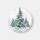 Rustic Green Winter Pine Trees Red Cardinal Bird Magnet
