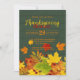 Celebrate the season with this elegant Thanksgiving invitation featuring a deep green wooden background that radiates rustic charm. A vibrant arrangement of autumn leaves and berries anchors the design, adding warmth and festive colour. The mix of graceful script and bold serif fonts creates a balanced, eye-catching layout that guides guests through the details.