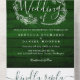 All in one wedding invitation featuring pretty string lights, hand-drawn floral garland and chic typography on a rustic green wood panels background. The invitation includes a perforated RSVP card that can be individually addressed or left blank for you to handwrite your guest's address details. Designed by Thisisnotme©