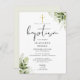 This elegant botanical greenery leaves baptism invitation postcard can be personalised with your information in chic typography with your monogram initials on the reverse. Designed by Thisisnotme©