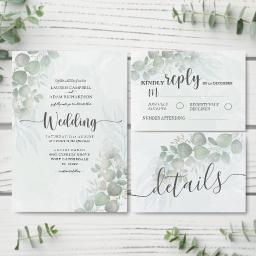 Rustic Greenery Eucalyptus Watercolor Wedding Invitation