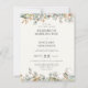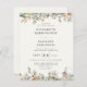 This rustic wedding invitation features watercolor top and bottom borders of delicate greenery. Personalise it with the names of the bride and groom in vintage charcoal grey typeface on an off-white background. The reverse side provides space for wedding details on a solid off-white background, along with a QR code guests can scan to visit your website and RSVP, which saves the cost of printing and mailing separate RSVP.