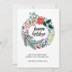 Rustic Greenery Red Poinsettia Floral Wreath Chic Holiday Card