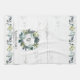 This personalised rustic themed kitchen towel features a hand painted watercolor greenery laurel wreath with a monogram initial in the middle on a background of white and grey weathered wood. Below is your family name and border of botanical leaves. From our hearts to yours, enjoy!