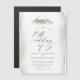 If you are planning on celebrating your wedding outdoors or simply love greenery and mountains, this wedding magnetic invitation will be just perfect for you! Featuring green watercolor leaves around a chic calligraphy font, a mountain and log cabin illustration at the top with trees. Your wedding details are displayed in classy serif typography placed on top of a faded watercolor background. Perfect for rustic or country themed weddings.
