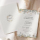 This rustic wedding invitation features watercolor top and bottom borders of delicate greenery. Personalize it with the names of the bride and groom in vintage charcoal gray typeface on an off-white background. Add the couple's initial on the back, encircled by a small matching watercolor wreath.