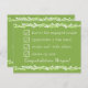 Personalise these funny Will You Be My Groomsman invitations to match your Rustic Greenery wedding set. Designed with my hand drawn double vine and leaves artwork and white mixed font lettering on a solid spring green background, the front features a funny checklist - the backside proclaims that the recipient has qualified to be a Groomsman. Add personalised names to the CONGRATULATIONS line on the front. On the back, the wedding party title line and groom's name can be customised. This funny flat card can easily be converted to "Will You Be My Bridesmaid" invites if you wish. Peruse my shop to see all the Rustic Greenery wedding items that coordinate with this funny Groomsman card or mix and match with my green on white Woodsy Elegance collection.