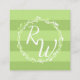 A timeless white and green Rustic Greenery design makes this wedding registry card a beautiful addition to your wedding invitation suite. Crisp white text on a background of Greenery is a classic choice for spring, summer or even a fall wedding. Personalise the front of this square registry card with your names and the stores where thoughtful wedding guests will find perfect gifts for your perfect day. The back features the double bride and groom's monogram encircled with my double vine branch wreath that is the signature of this wedding set. The subtle stripes background can be removed if you prefer a solid shade of green - just pick the option to further customise and personalise this item. From a rustic spring wedding, a romantic summer wedding or a fall country woodland destination wedding, this wedding registry card in soothing shades of Greenery and white will fit into your celebration. Browse my store to see mix and match options in my Woodsy Elegance category.