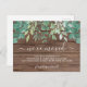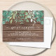 It is decorated with watercolor foliage in shades of green and a barn wood background.