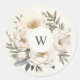 Rustic Greenery White Floral Monogram Wedding Classic Round Sticker