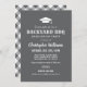 "Backyard BBQ" party invitation features a graduation cap motif, stylish custom text in rustic and modern fonts, a scroll, and plaid pattern design elements, and white text. Grey background colour can be customised. Perfect for a casual outdoor summer graduation party.
