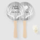These fans were exactly as pictured. The quality is great. Perfect favor for a wedding!...I will make assembly a little easier by using a hot glue gun and finish them off with a ribbon. Beautifully printed. Crisp and clear text.