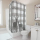 Rustic Grey Buffalo Plaid Checkers Deer & Birch Shower Curtain