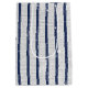 Rustic Grey Linen & Navy Blue Stripes Pattern Medium Gift Bag