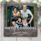 Rustic Wood Family Photo Merry Christmas Ceramic Ornament. Rustical dark grey wood background with a photo in the round frame and merry Christmas in a white trendy script. Sweet Christmas family keepsake and gift.