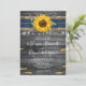 Rustic Grey Wood Navy Blue Lace Sunflower Wedding Invitation