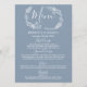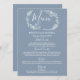 Featuring rustic floral garland hand-drawn illustrations and stylish script on a dusty blue background. You can choose your favourite background colour to create a unique design. Personalise with your special wedding day menu information. Designed by Thisisnotme©