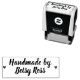 Rustic 'Handmade by' rubber stamp with name for personalised touch for gift packages, craft shows and branding. Reads 'Handmade by' with name in handwritten look lettering with a tiny black and white heart on each end. We have more personalised rubber stamps in our Zazzle.com/angela65 shop.