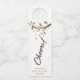 These simple and stylish bottle hangers say "cheers" in trendy handwritten script for a modern black and white look.