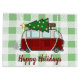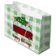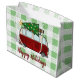 Have a whimsical Christmas with these wonderful large gift bags. An adorably cute camper hauling a Christmas tree design adorns each side over a rustic white and light green plaid pattern. Have a happy holiday!