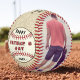 Rustic Happy Father`s Day 2 Photo Collage Softball. This rustic custom and personalised softball is a perfect gift for a dad or a new dad on a father`s day. The best dad ever two photo template softball. Personalise it with two photos and your names. The text is a trendy black and red typography and is written on a softball ball drawing. The background is a rustic beige texture.