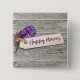 Modern Persian New Year illustration: Purple hyacinth with New Year "Happy Norooz" wishes on a rustic wooden background.
