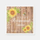 An elegant ,rustic yellow sunflower Happy Retirement party Napkin comprising of a brown wooden grain background decorated with a pretty floral watercolor yellow sunflower with a bee and a string of lights. The perfect party table decoration for a retirement party. Personalise with a name and date to make it extra special . All text can be amended if needed to customised the item.