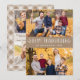 Rustic thanksgiving photo card featuring "Happy Thanksgiving" displayed in white handwritten text with a brown kraft paper background. Personalise the front of the cute Thanksgiving card by adding two of your favourite photos, your names, and the year. The card reverses to display two additional photos, your custom message, and a watercolor plaid pattern in shades of brown and beige.