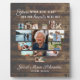 This memorial sign is the perfect way to express a memory of a loved one never to be forgotten. Beautiful quote, rustic wood background and 15 photo heart shaped collage with loved ones name and dates. Quote can be changed to any wording. Honour the memory of your loved ones with a special memorial plaque personalised to be a treasured keepsake. Can be transferred to any product Zazzle carries.