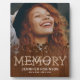 Rustic memorial photo plaque featuring a treasured photo of your loved one, a dark wooden heart design, the saying "in loving memory", their name, and dates.
