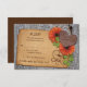 The text on this country and western orange gerbera (gerber) daisy and rusty heart on leather and rustic wood (bark, tree) background wedding RSVP reply card is fully customisable. You can change the text using the personalise option. For more extensive changes to the insert card, including changing the font, font colour, font size or text placement choose the customise it option. This is a great wedding RSVP card if you are having a rustic, western, or country theme. This card is currently customised for a wedding, but would also work great for any other special occasion you want to use a rustic or country theme for. All you need to do is change the wording. It also works well for a barn, outdoor, or farm wedding theme. Great for a wedding in the spring, summer, or fall / autumn. NOTE: this is a flat, printed design without any raised or 3D embellishments.