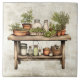 Rustic Herbs & Spices Wooden Stool Watercolors Tile