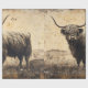 This artwork features a rugged Highland cattle with its signature shaggy coat, set against a rustic countryside backdrop. The earthy tones and textured style evoke a timeless, pastoral charm, perfect for farmhouse decor and nature-inspired art lovers.