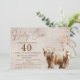 Sweet rustic bohemian highland cow 40th birthday invitation featuring a cow, some boho floral arrangements on a watercolor wood background image and faux copper calligraphy heading. Great for an upcoming 40th birthday party.