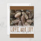 Festive, rustic pine cones accentuate this classic, elegant design wishing holiday Love and Joy.
