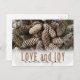 Festive, rustic pine cones accentuate this classic, elegant design wishing holiday Love and Joy.