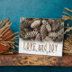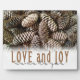 Festive, rustic pine cones accentuate this classic, elegant design wishing holiday Love and Joy.