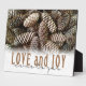 Rustic Holiday Love and Joy Pine Cone Plaque
