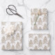 Rustic Holiday Tree Pattern White Golden Brown Wrapping Paper Sheet