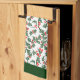 Rustic Holly and Berry Holiday Pattern on Green Tea Towel