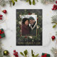 Introducing our enchanting foil Christmas card, where timeless elegance meets the beauty of the season. The rich charcoal black background, artfully distressed with soft white accents, sets a captivating tone. Your favourite photo will shine, surrounded by a delicate foil frame that adds a touch of refinement. The simple message speaks to the season's goal. Embrace the spirit of winter with a breathtaking frame of lush greenery, featuring holly adorned with rich red berries, mistletoe with its delicate white berries, and the timeless allure of green pine. This winter wonderland-inspired design captures the essence of the season and exudes natural grace and festive charm. Created by Simply Farmhouse Press.