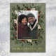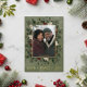 Introducing our enchanting foil Christmas card, where timeless elegance meets the beauty of the season. The rich pine green background, artfully distressed with soft white accents, sets a captivating tone. Your favourite photo will shine, surrounded by a delicate foil frame that adds a touch of refinement. The simple message speaks to the season's goal. Embrace the spirit of winter with a breathtaking frame of lush greenery, featuring holly adorned with rich red berries, mistletoe with its delicate white berries, and the timeless allure of green pine. This winter wonderland-inspired design captures the essence of the season and exudes natural grace and festive charm. Created by Simply Farmhouse Press.